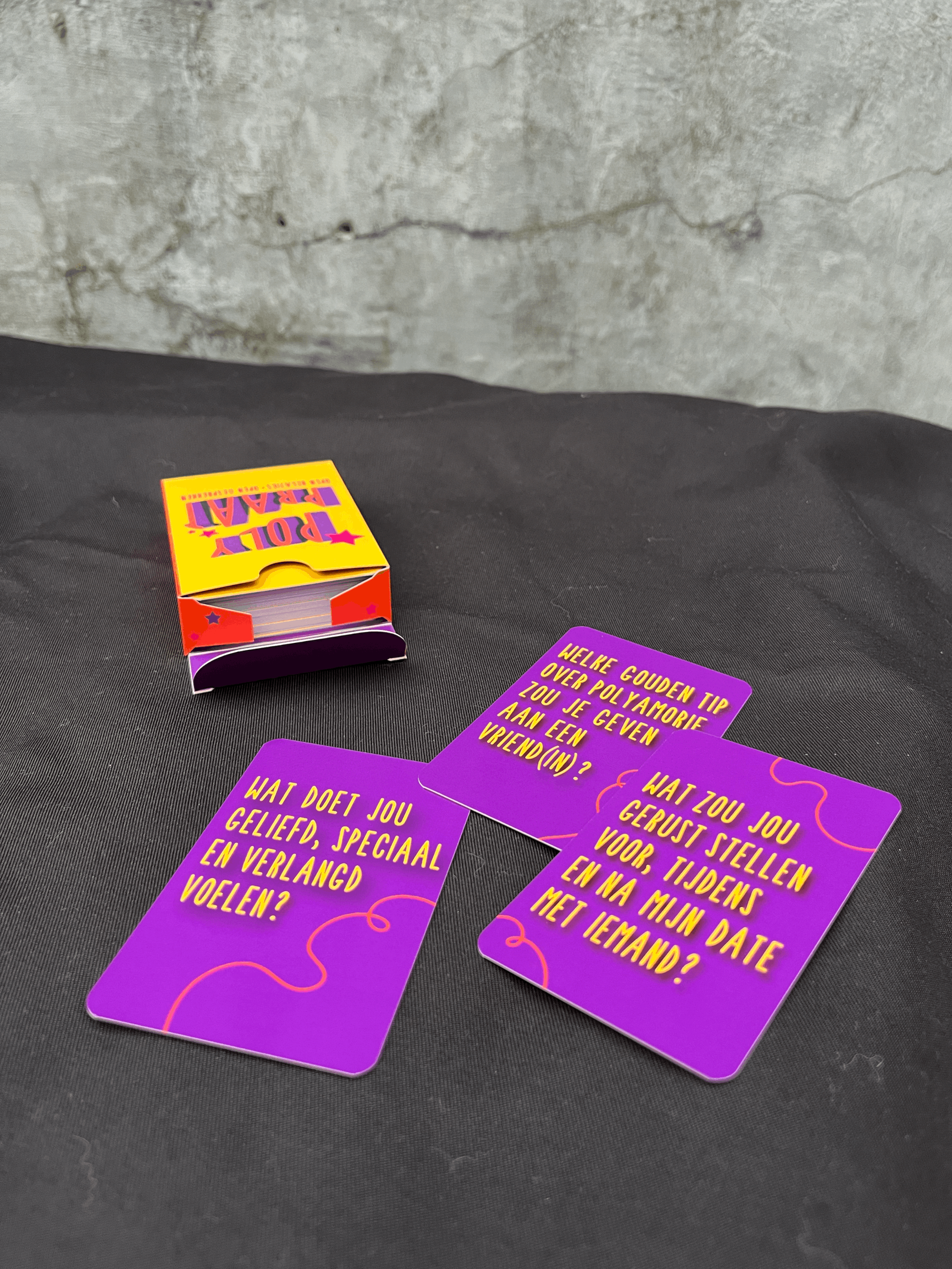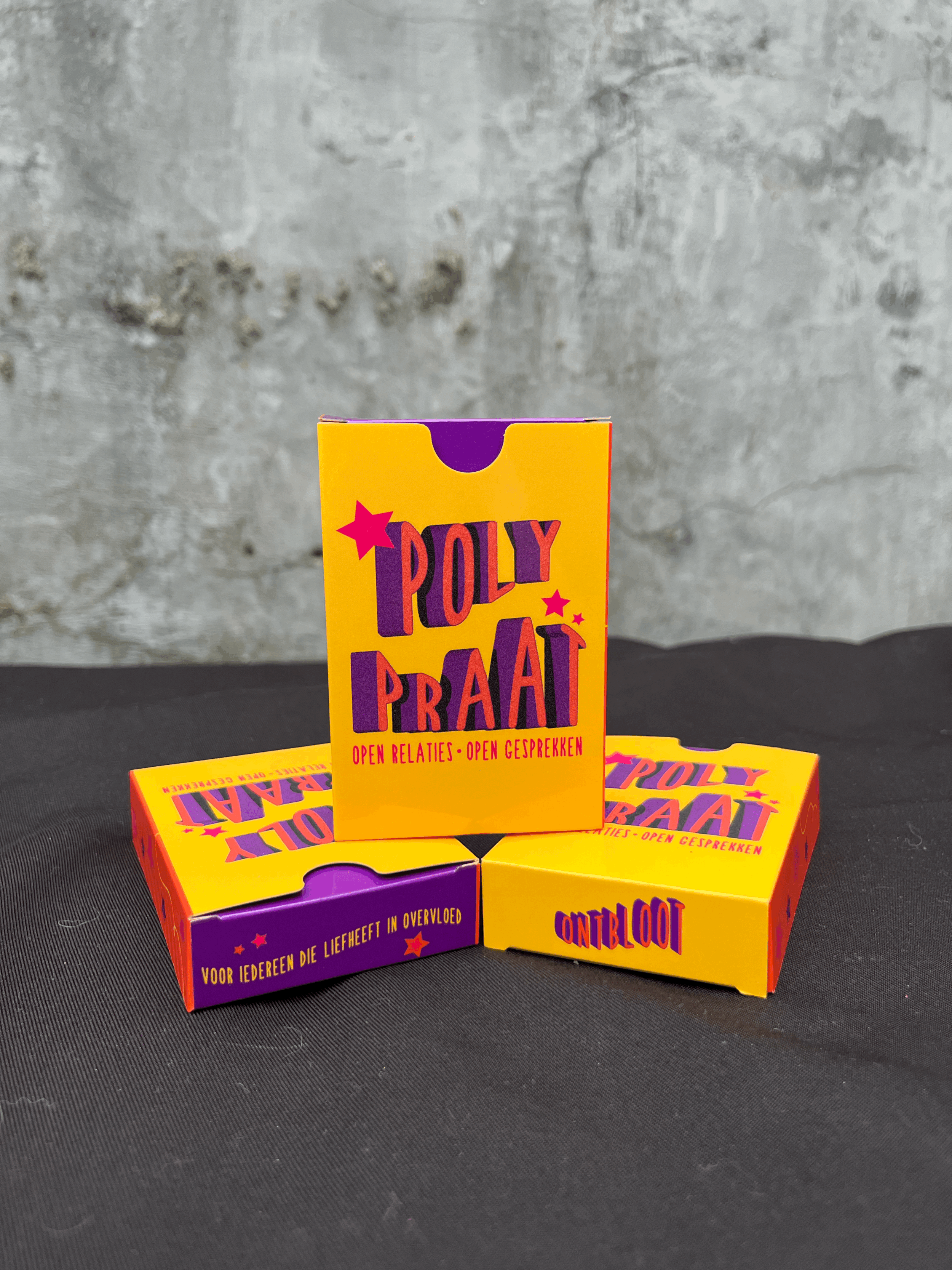 Poly Praat is een conversatiestarter om gesprekken rond polyamorie te stimuleren en vergemakkelijken met je partner(s), mensen waarmee je aan het daten bent, wil daten,… Poly Praat stelt de nodige vragen om samen te dromen, om je verwachtingen op elkaar af te stellen, om ervoor te zorgen dat iedereen zich gehoord voelt in hun verlangens, om op een evenwaardige manier je noden te bespreken, om jullie communicatie en vertrouwen te versterken, en om je ideale relatiestructuur samen vorm te geven. Want open relaties verdienen open gesprekken ;-)